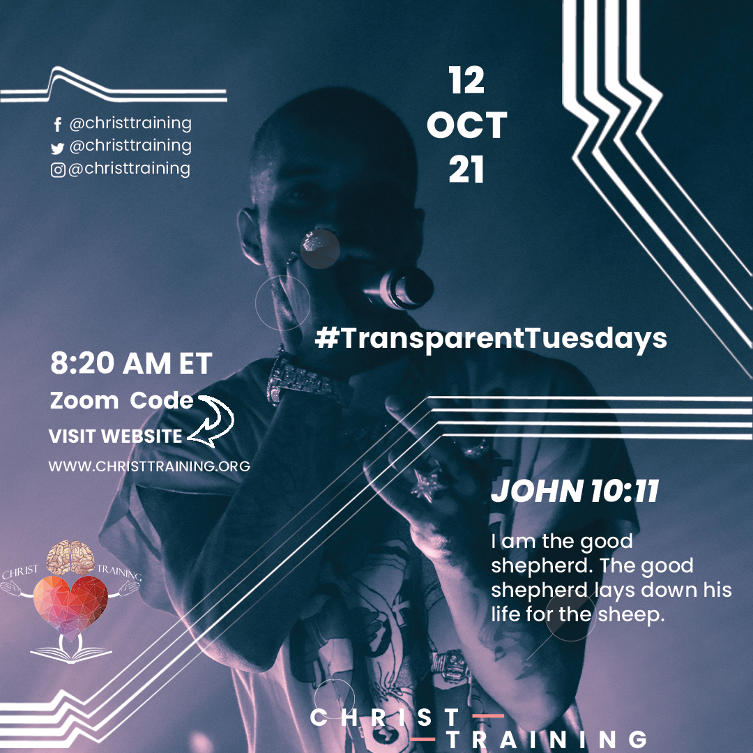 This Tuesday join us as we talk transparently and dive into the word! John 10:11 I am the good shepherd. The good shepherd lays down his life for the sheep.