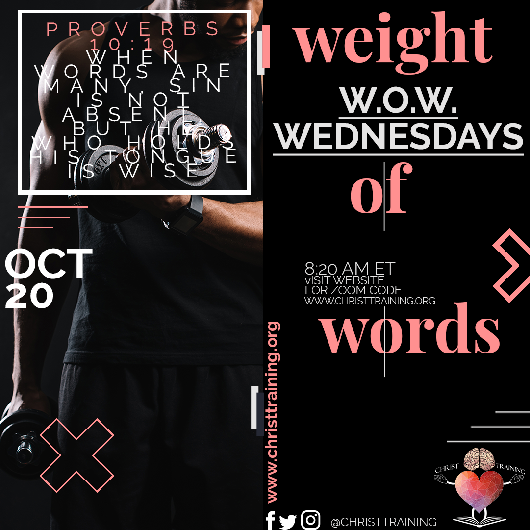 This Wednesday join us as we dive into the word and talk about the weight of our words! Proverbs 10:19 When words are many, sin is not absent, but he who holds his tongue is wise.